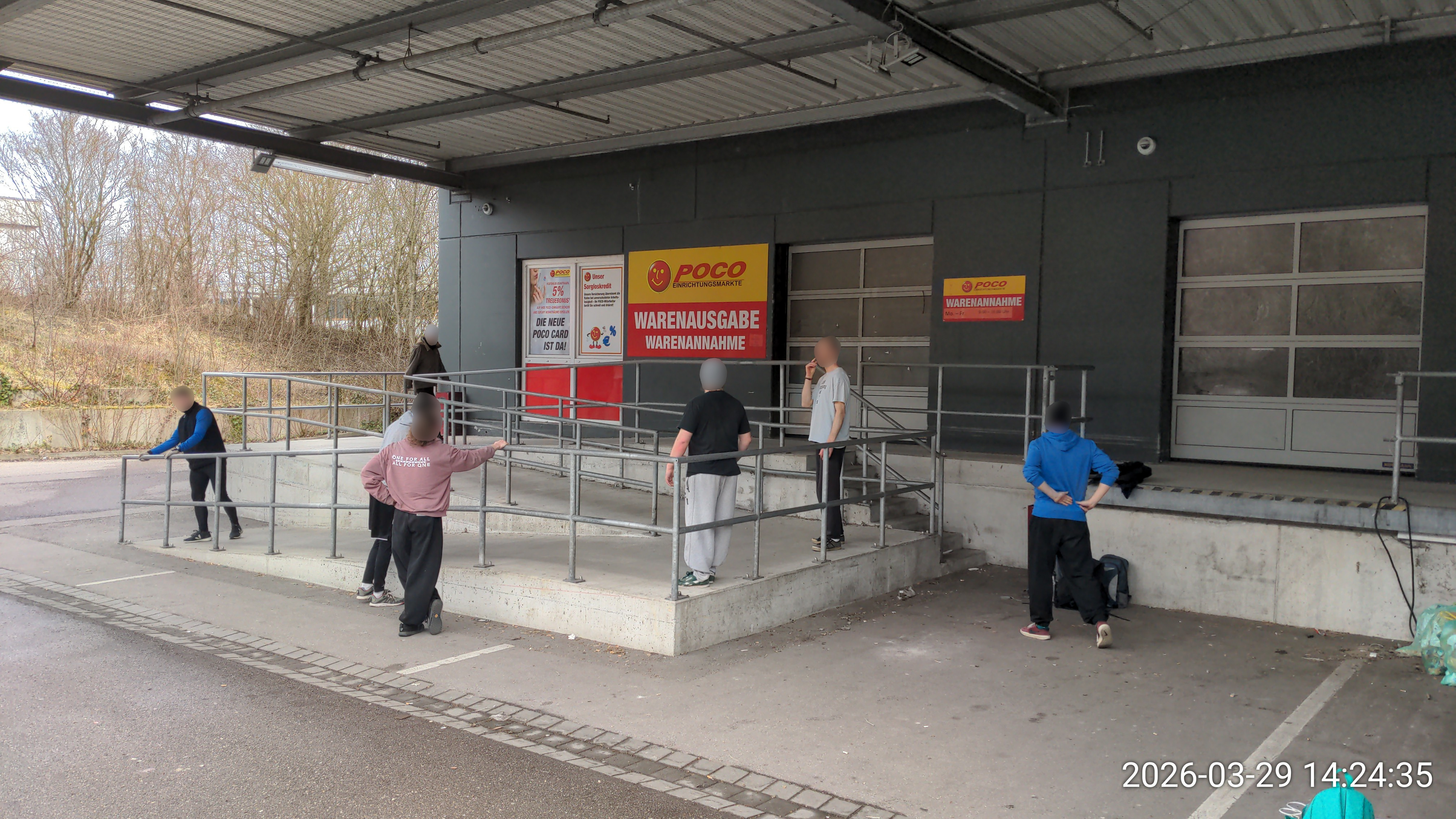 - Präzikanten, Bäume (schwingen), Fassade, Stufen mit Wand